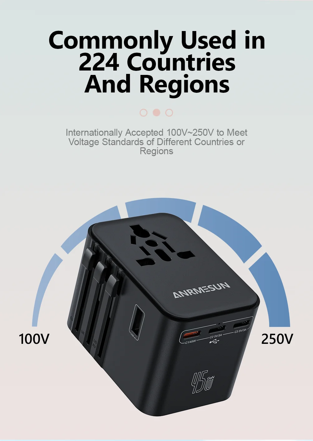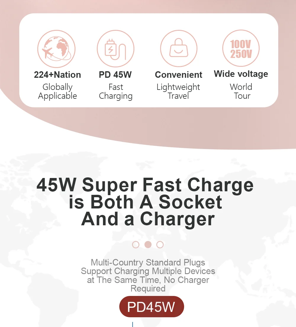 Supports 100–250V input — your ideal charging partner around the world.