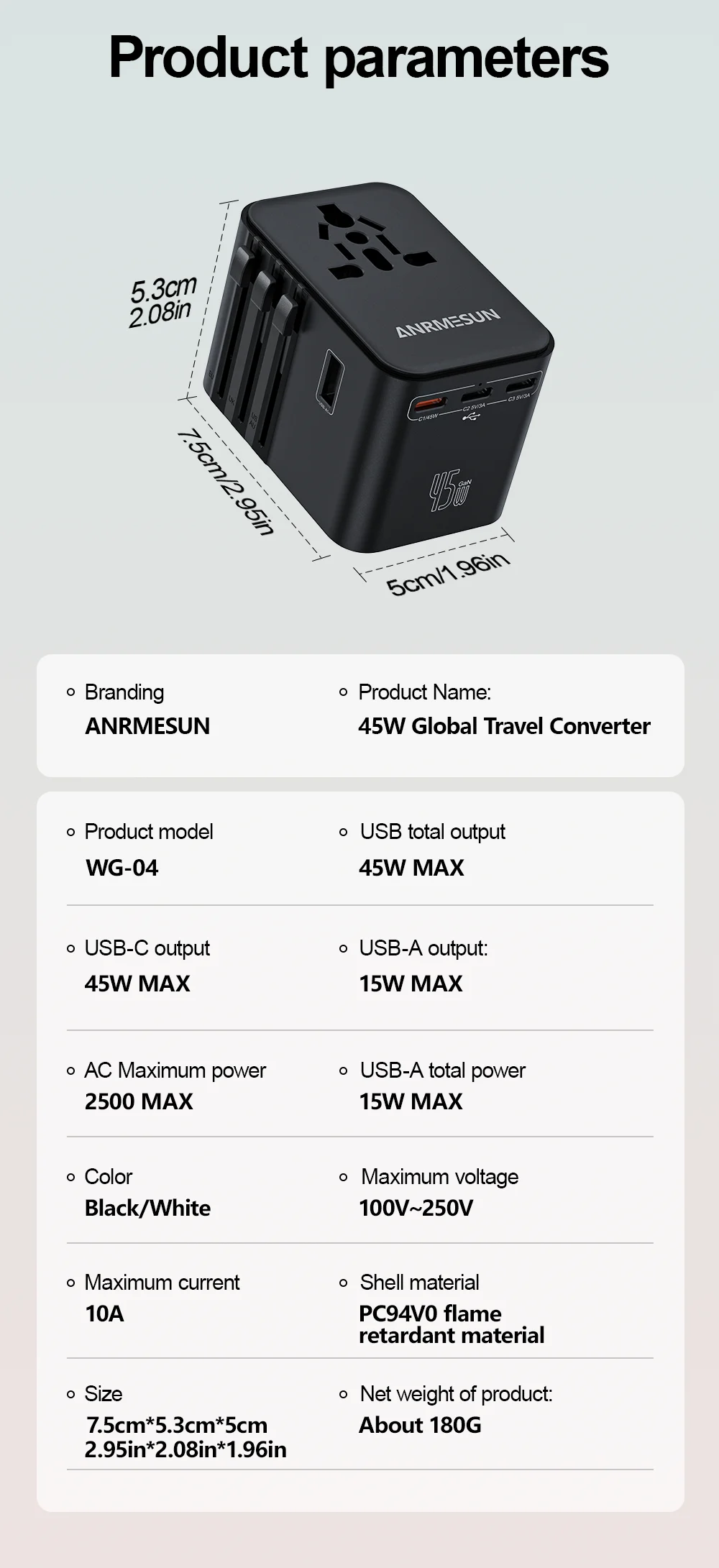 【45W GaN Universal Travel Charger | All-in-One 9-in-1 Adapter for Global Travel】