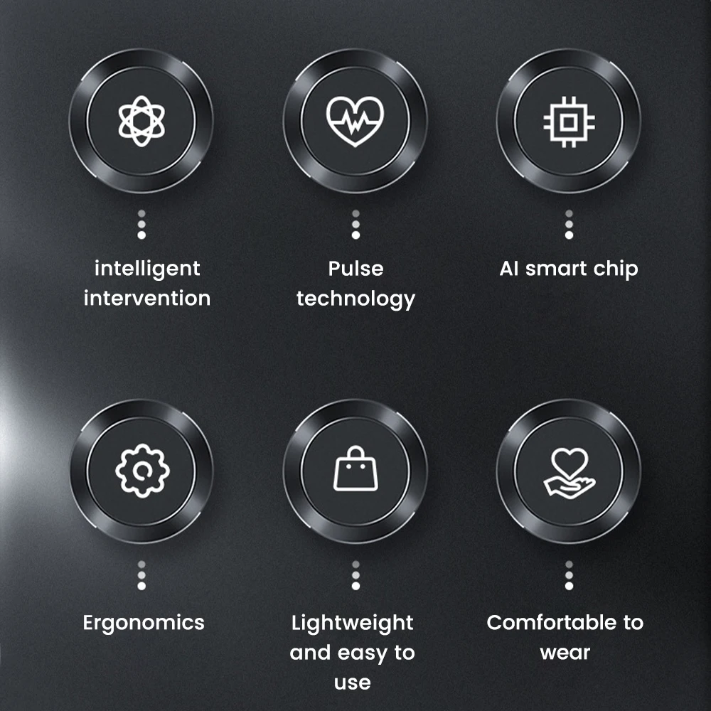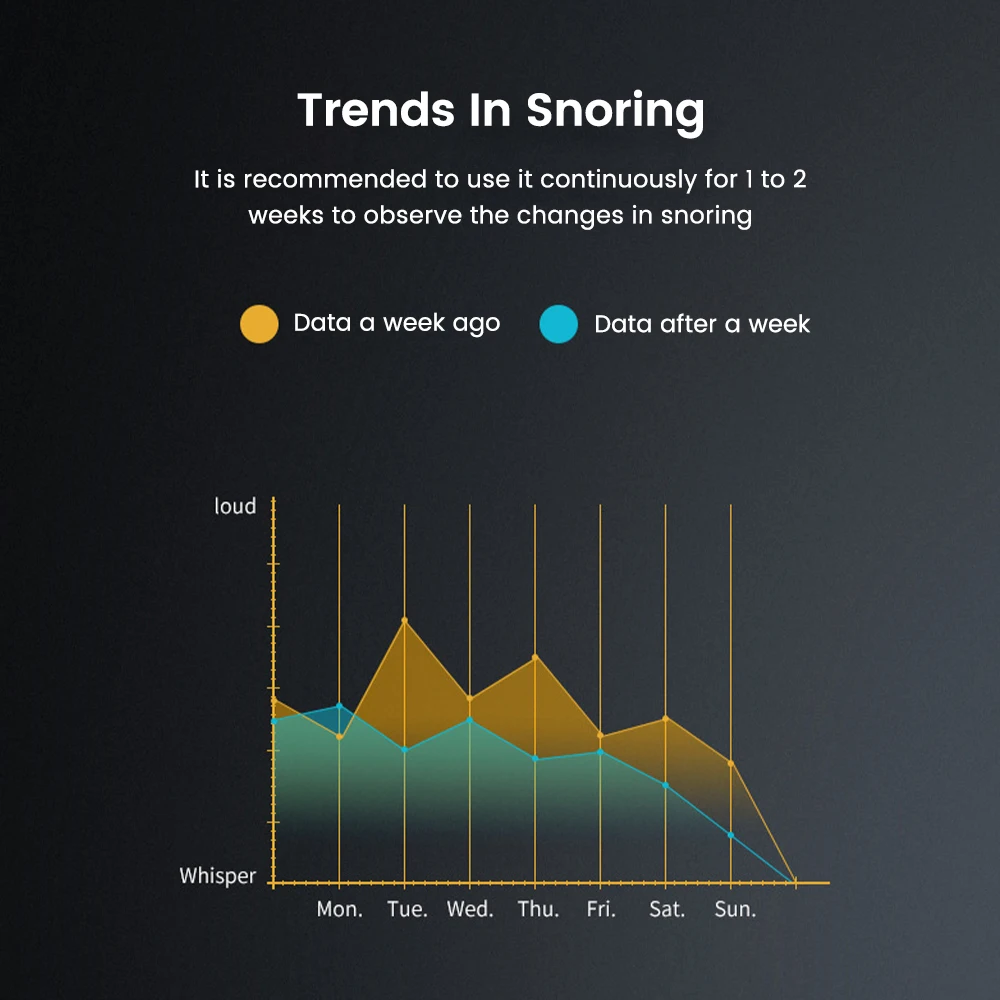 When wearing the product at rest, it will automatically and accurately detect snoring through high-precision sensors, massage the sublingual nerve and mandibular muscles through vibration pulses of different frequencies, promote muscle tightening, regulate breathing rhythm and make breathing easier