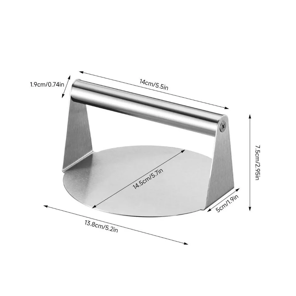 Made of stainless steel :Durable and rust-resistant material ensures long-lasting use.Non-stick surface :Easy to clean and prevents burgers from sticking to the press.